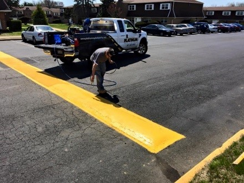 Platinum Paving provides parking lot striping services to commercial property owners and managers. Our line striping crews have the expertise to design and layout your pavement markings, ensuring effective traffic flow. Your parking lot is your customer’s first impression of your business. Newly striped pavement lines are attractive and a good indication that the property owner emphasizes maintenance.